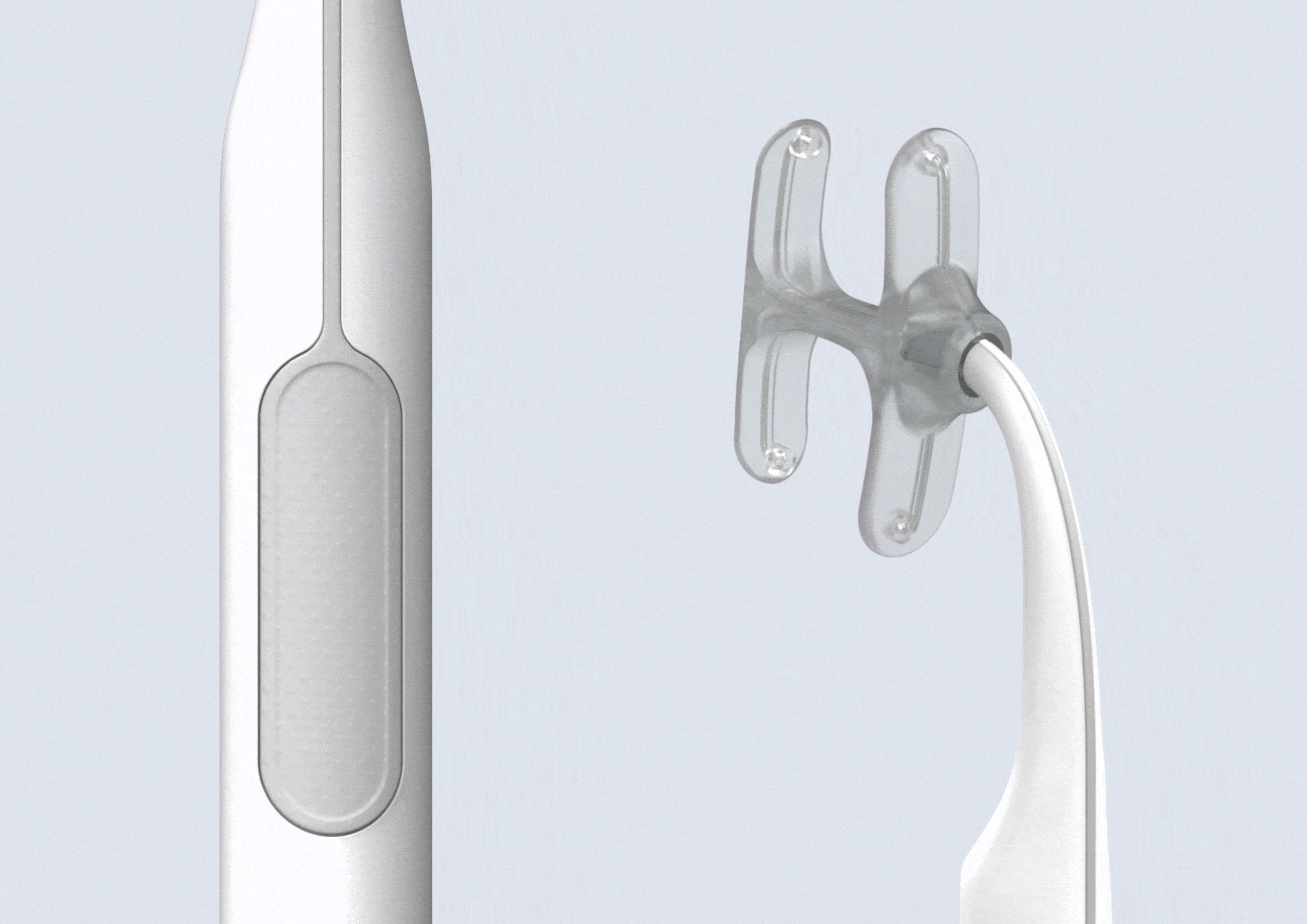 I began prototyping the initial concepts with a goal of narrowing down the functional aspect of the flosser (ex: storage-friendly, mouth-piece design) as well as getting a brief understanding on scale and feel. After testing and feedback, I moved forward with a specific form and worked on refinement of shape, interface design and ergonomics.