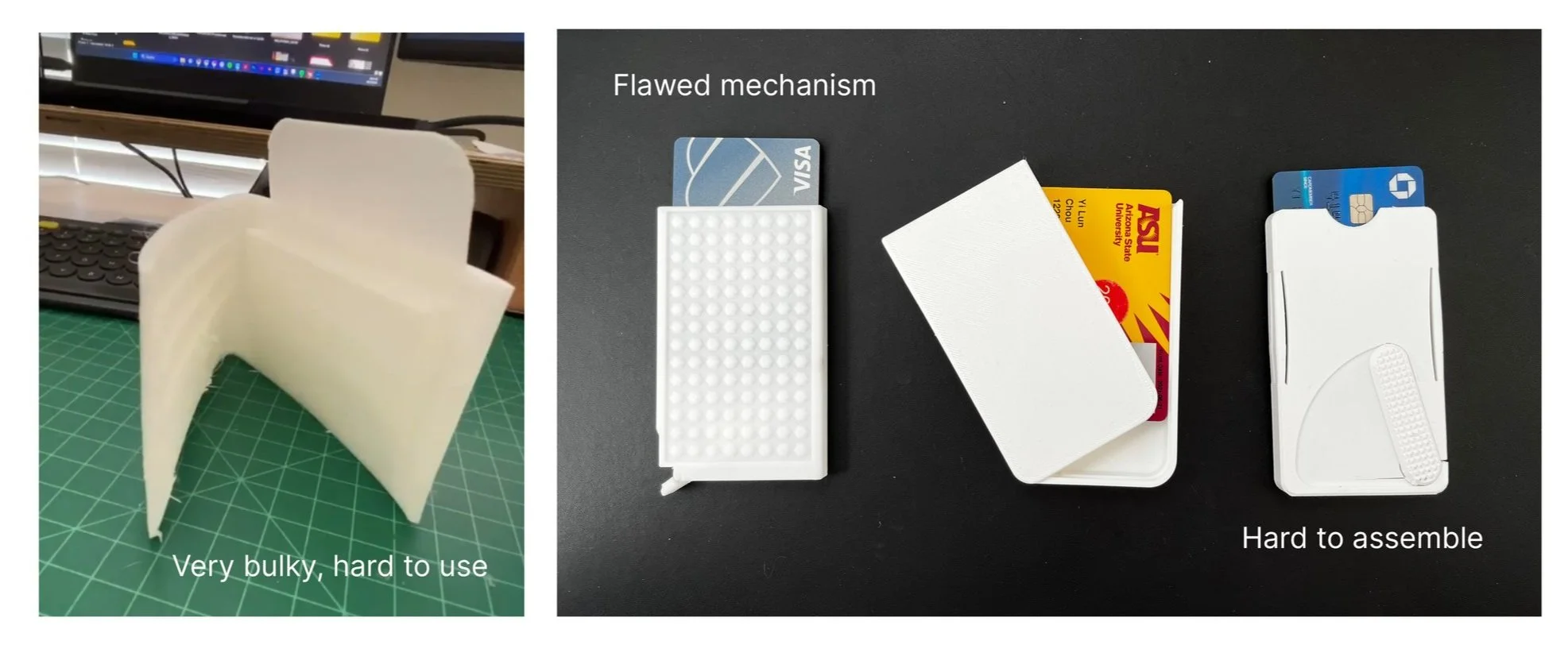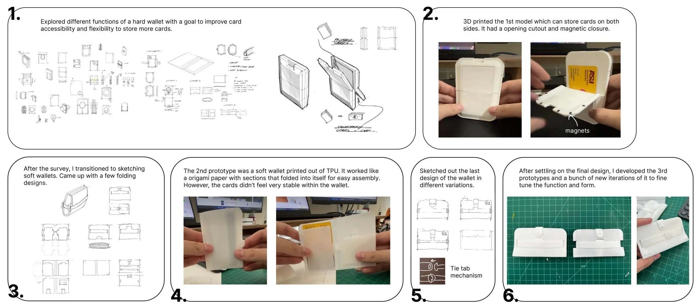The development of the wallet had been a lot of back and forth between sketches and prototyping. It also involved iterations of testing to explore and refine function and form.