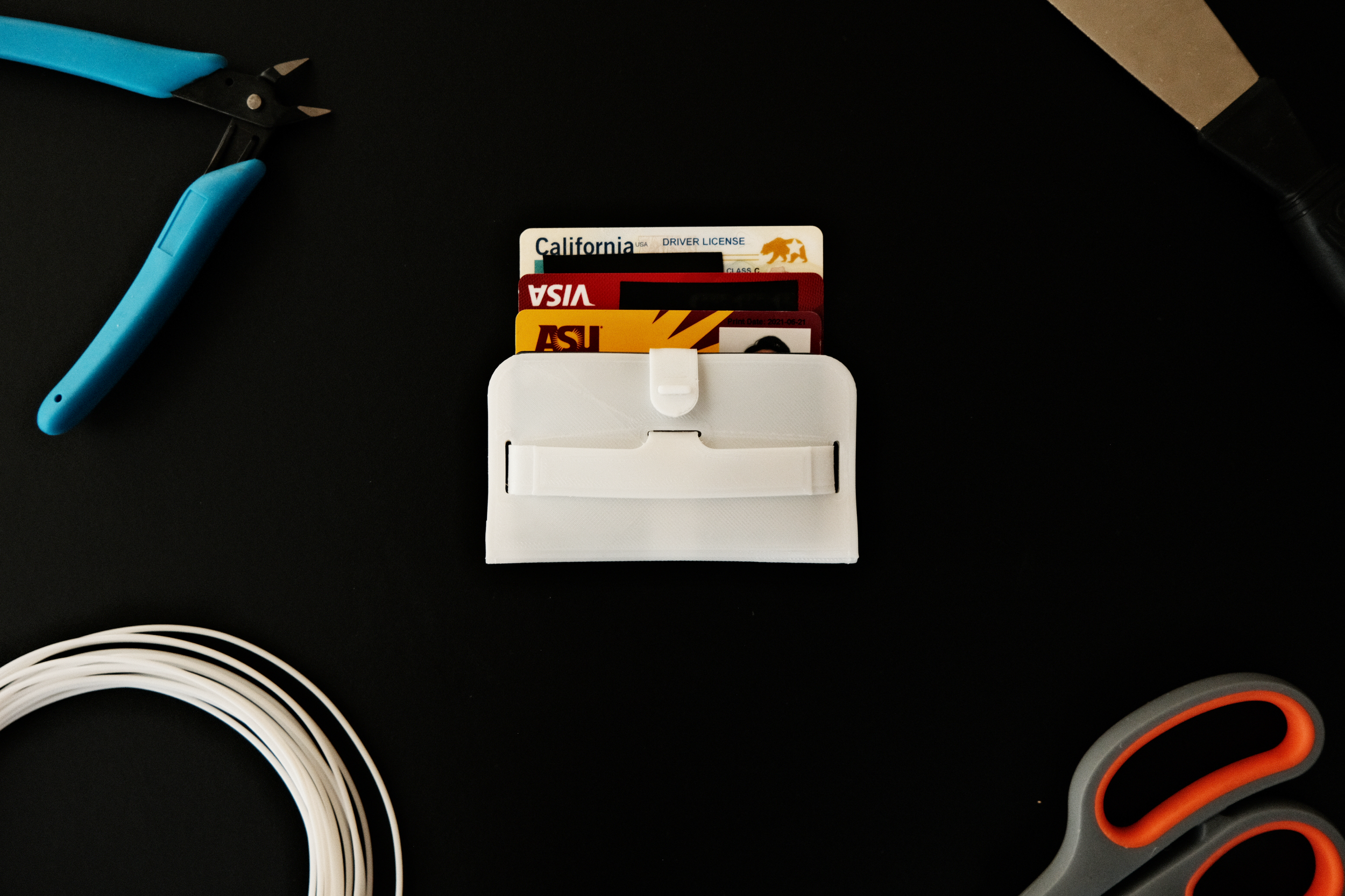 The Form Wallet is printed with TPU so it has the flexibility of a leather wallet. The modular design enables it to be used minimally, with 3-4 card capacity, or up to 7-8 cards. It also has a simple flat construction with no overhanging parts for ease of printing.