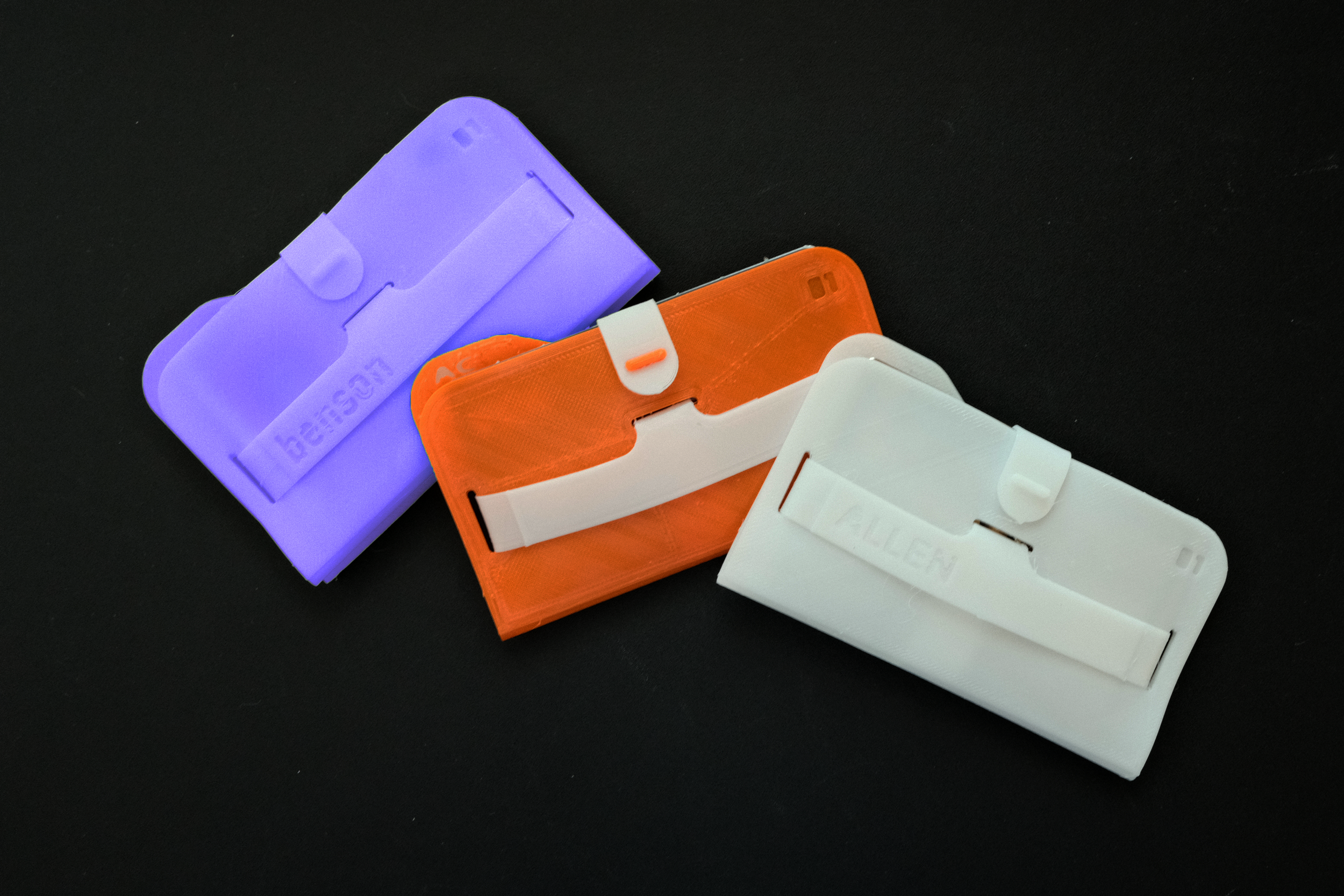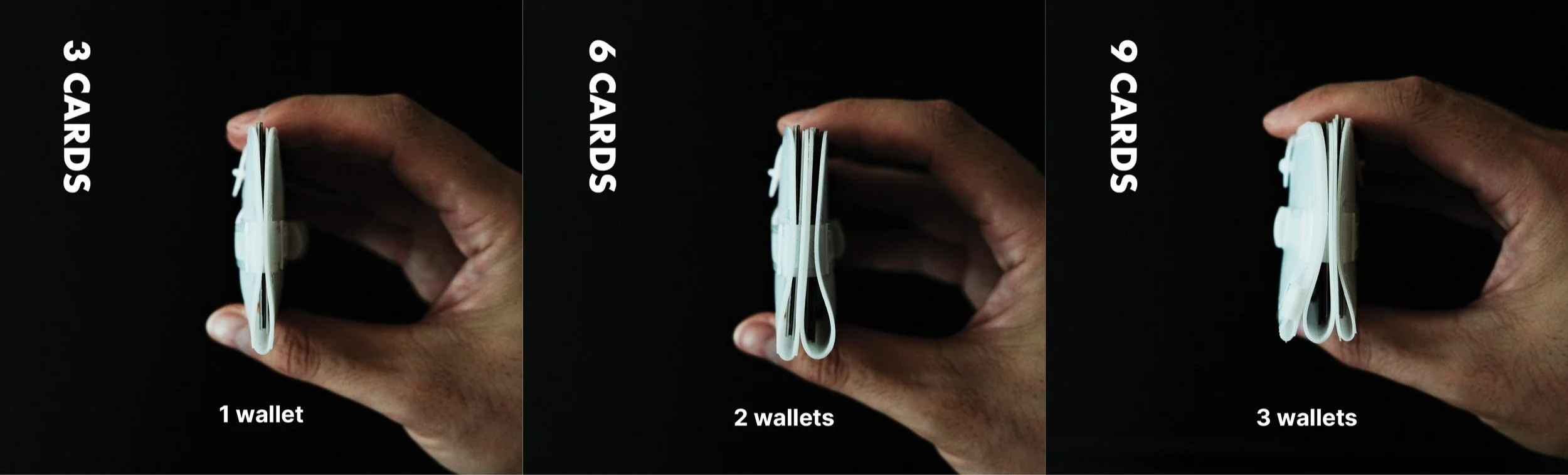 Simple construction: with just two printed pieces, users can assemble the most minimal wallet setup. Simplicity and flexibility are the name of the game.